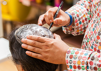 かつらのベースとなる型取りをします。かつらの範囲を確定後、毛量や毛の流れ、色や白髪の割合などをチェックします。所要時間の目安は40分~60分程度です。※部分かつらと全頭かつら、内容により所要時間は変わってきます。