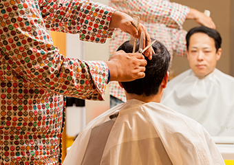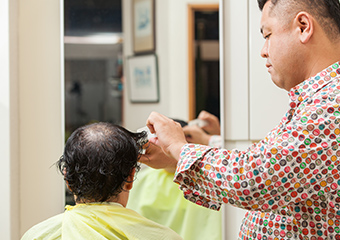 かつらが完成したらご来店いただきます。まずはお客様の髪をカット(必要に応じてカラーやパーマなども対応)します。